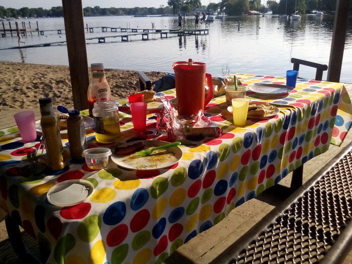 I announced to the kids that we were having backwards dinner at the beach tonight. Backwards dinner is an idea I read about on a blog – dessert first!! When I explained that we were going to start dinner by going to Cub to buy IttyBitz ice cream (or mini ice cream tubs – their choice) and then go to the beach, I got some slightly surprised faces. “No, seriously! We’re getting IttyBitz and then eating at the beach!!” I said. The whooping began and it was a super fun night. We had the beach mostly to ourselves (no lifeguards yet!) and used the portable grill for hot dogs and all that goes with them.